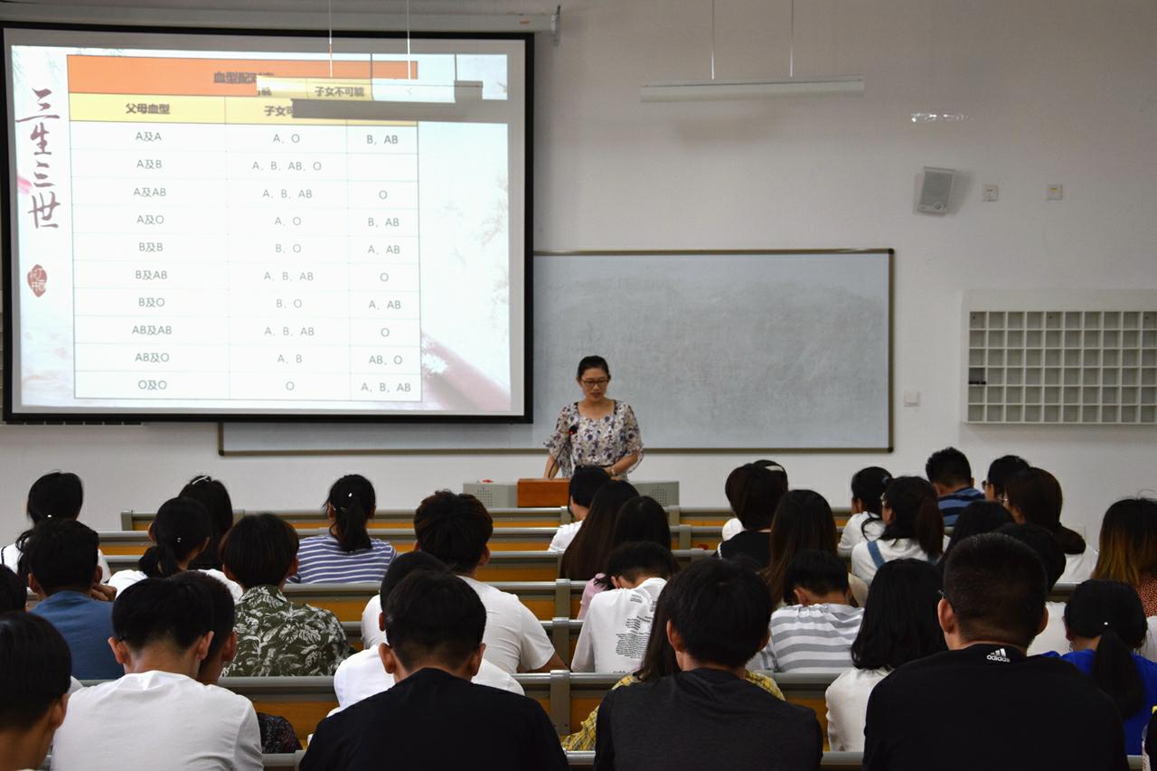 济南市第二血液供保中心孟宪霞作为本次活动的主讲人,讲座伊始,孟宪霞结合同学们熟知的影视明星,详细地讲解了血型的种类及配对情况。通过观看济南市第二血液供保中心的成分血制备视频、血液检测仪器和输血设备照片等形式,向同学们介绍了血液采集设备检测、储存、发放、运输全过程。通过观看手术的纪录片,孟宪霞向同学们介绍了献血的要求、献血后的注意事项、献血证的作用、莱芜地区的无偿献血情况,使同学们更加直观地感受到献血的需求。最后,孟宪霞与在场同学进行提问互动,并为部分同学们免费测量血型,令同学们获益匪浅。