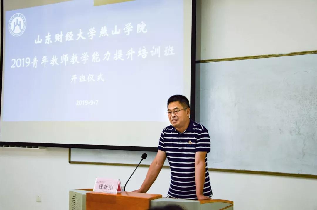9月7日上午,开班仪式在主持人简洁的开场白中正式开始。魏新刚副院长致辞,他向青年教师们简单介绍了我校的发展历程以及师资力量情况,他表示很欣喜看到一大批具有专业知识的青年教师加入山东财经大学燕山学院,并且在教学能力方面给予了他们殷切希望,对我校未来教学工作充满信心。