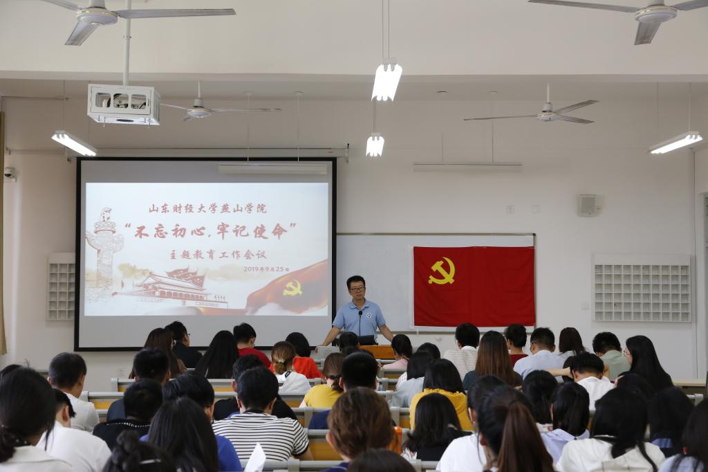 9月25日下午,山东财经大学燕山学院“不忘初心、牢记使命”主题教育动员部署会议在莱芜校区7302教室召开,传达了我校“不忘初心、牢记使命”主题教育工作实施方案、学习计划和近期工作安排,并就学校开展好主题教育进行全面动员和部署。党委书记王松主持会议并作动员讲话,莱芜校区全体教职工党员和学生党员参加会议。