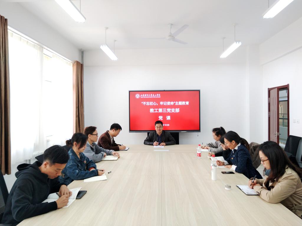 10月30日下午,魏新刚副院长在行政楼四楼会议室为教工第三党支部党员作“不忘初心、牢记使命”主题教育专题党课。