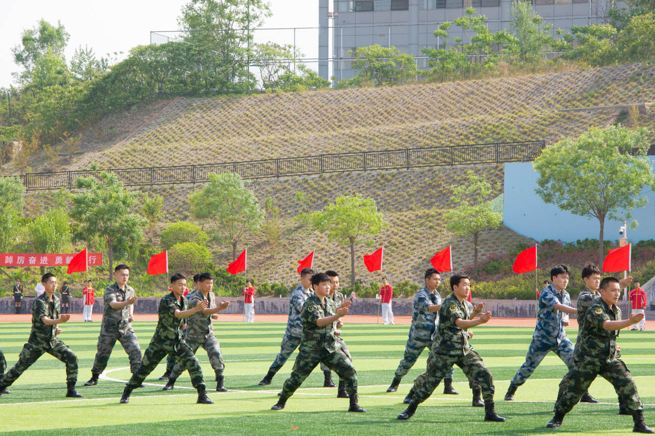 运动员和裁判员退场后,太极拳和军体操表演登场。太极拳拳势连贯均匀,身姿飘逸潇洒;军体操英姿勃勃,八面威风,同学们用日复一日的练习为我们呈现最完美的表演。