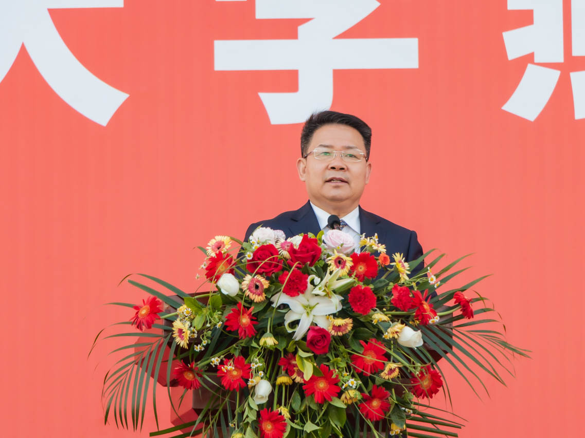 院长孙玉杰致开幕词。他指出,大学不仅是传授知识和技能的场所,更是培养人的思想、情感、意志、品质和体质之所在,是铸造灵魂的地方。如果青春有色彩的描绘,那一定少不了绿茵场的驰骋,如果生命有深藏的通道,那一定是跑道的延伸。体育运动就是培养和展现人的身体素质、精神状态和意志力等综合能力的一种活动。无论是为了当下的学习,还是为了未来的工作生活,都需要良好的身体素质。学校历来高度重视师生的身体健康,通过特色体育课程,强化课外锻炼,定期组织开展体育竞赛活动,增强师生体质。这次运动会是对我校师生精神面貌和体育运动风采的一次展现,同时也是对我校体育工作的一次检阅,希望运动员发扬“更高、更快、更强”和“团结、友谊、互助”的奥运精神,遵守赛场规则,尊重服从裁判,顽强拼搏,赛出成绩,赛出水平,赛出风格。
