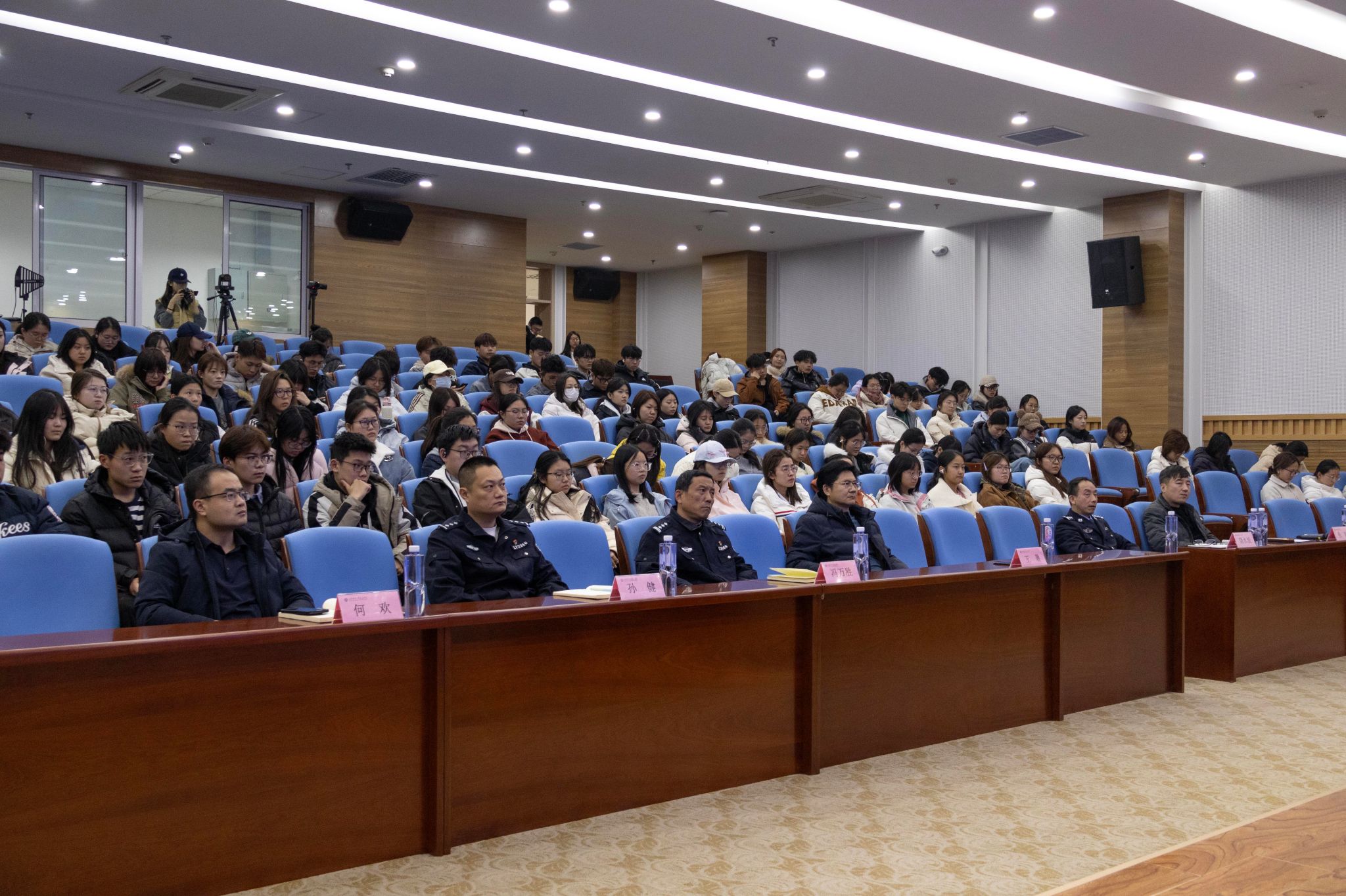 本次讲座特邀莱芜分局刑侦大队民警王英杰、莱芜分局北孝义派出所民警饶水波讲解安全知识,山东财经大学燕山学院副院长王暑、莱芜公安分局北孝义派出所三级高级警长兼驻校民警冯万胜、莱芜分局内部单位安全保卫大队二级警长孙健出席本次活动。