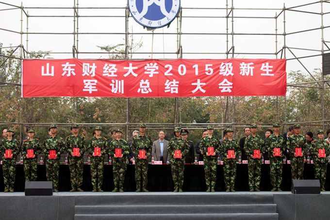 10月23日上午,山东财经大学2015级新生军训总结大会在明水校区体育场隆重举行。山东财经大学校长卓志,校党委副书记张东超,副校长胡文波及承训部队中国人民解放军71939部队副政委崔孝国出席本次大会,部队和学校有关部门负责人到场参加。大会由校军训团政委、校党委学工部部长、武装部部长王剑主持。
