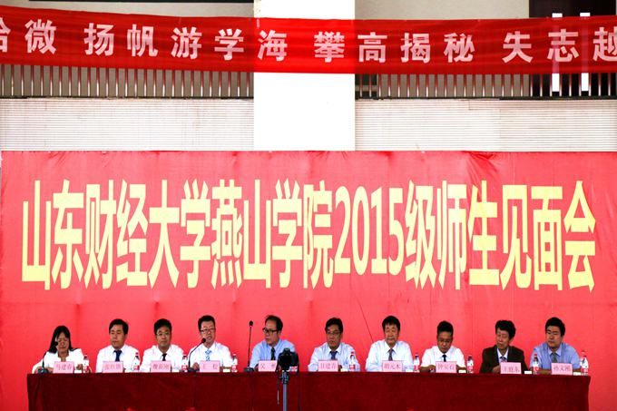 前几天观看了轰轰烈烈的抗战胜利70周年大阅兵,今天上午又经历了满溢着激情和期待的山东财经大学的开学典礼,我们在燕山学院可以静下心来聊聊家常话了。这些天来,车马劳顿,再加上适应新校园,也可能是有生以来第一次自己安排学习与生活,相信大家都有些疲惫。但在成人之后第一节“人际交往”课程——也就是报到过程里,你是否也感觉到迎新队伍里的老师和学兄、学姐的辛苦与疲惫呢?所以,在这里我提议,大家一起用真诚而热烈的掌声,欢迎2015级的新同学成为燕山人,同时也对在迎新工作中辛勤付出的老师和同学们表示感谢!