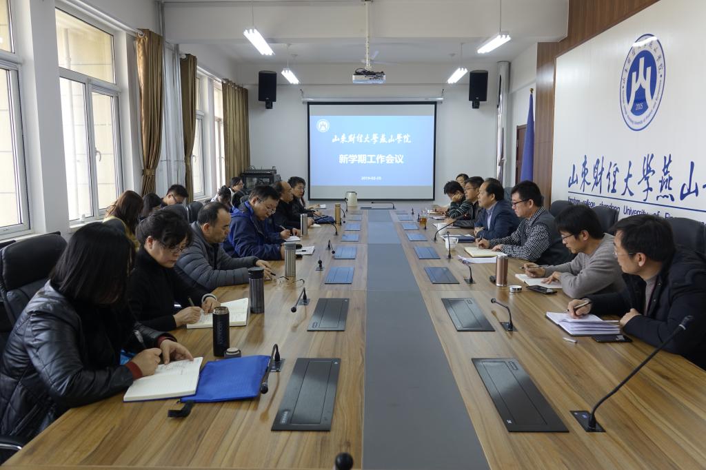 2月25日上午,我校新学期工作会议在莱芜校区行政楼会议室召开。会议以“夯实基础,狠抓落实”为主题,以全国教育大会、山东省“担当作为、狠抓落实”工作动员大会以及山财大中层干部会议精神为指导,对新学期工作进行全面部署和安排。党政领导班子全体成员,各处室负责人,各系(部)、中心主任,全体副科长以上人员参加了会议。会议由党委书记王松主持。
