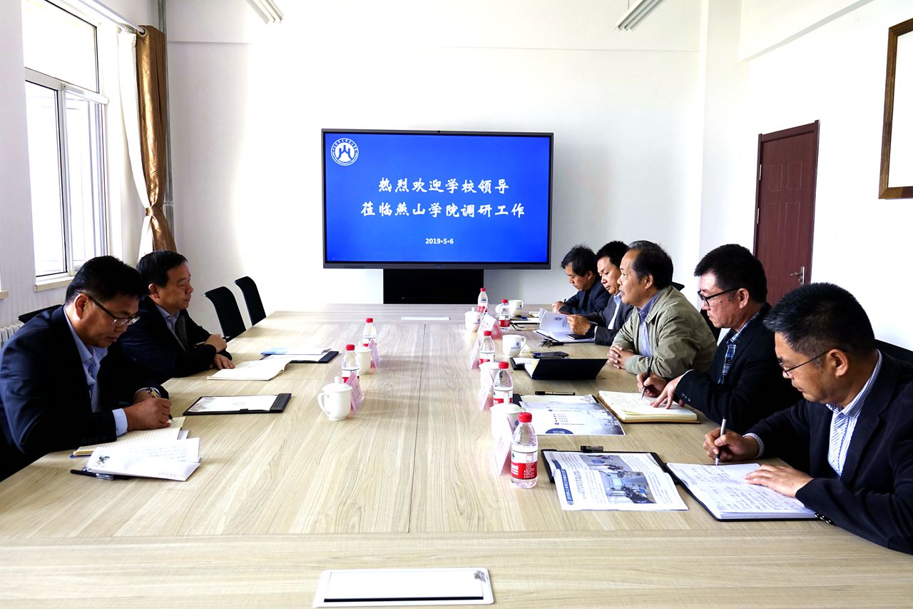 刘瑞波院长向王邵军书记简要汇报了自去年4月9日与莱芜城投签订合作办学协议以来、特别是2018级新生迁址莱芜校区办学以来,学校开展的主要工作和今后一个时期内的主要工作思路。刘瑞波表示,与莱芜城投合作以来,学校注重加强顶层设计,进一步明确了办学定位、办学理念和办学方针,凝练了“崇德尚学,笃行致远”的燕苑校训,着手制定学校中长期发展规划。学校制定了《2019-2022人才需求计划》,不断强化师资队伍建设,加大自有师资招聘与培养工作。以修订2019级各专业人才培养方案为契机,以专业建设为抓手,调整现有教学模式,改造现有传统专业;2019年新增投资学和商务英语两个本科专业,夯实了专业群,拓宽了学科建设门类。充分发挥第二课堂在学校人才培养中的作用,制定实施了具体的第二课堂管理办法,充实第二课堂内容,扩大第二课堂覆盖面,赋予第二课堂恰当学分,引导学生全面发展。积极加强产教融合,与校外企业组建了两个产业学院,突出“智慧物联”与“智能金融”两个专业方向,力求做到省内优先。突出职业化导向,积极对接国家“职业教育20条”,主动将职业资格考试课程纳入到新版人才培养方案中去。主动加强国际交流与合作,设立了国际合作办公室,成立了国际学院,与英国哈德斯菲德大学合作举办了“国际课程实验班”,受到了学生及社会各界的好评。扎实做好招生宣传工作,把迁址办学给学校招生工作带来的影响降到最低程度,确保了学校2018年招生任务的圆满完成。坚持上好就业指导课程、定期举办就业辅导报告,增强学生求职择业能力;坚持“走出去、请进来”,积极邀请用人单位来校举办人才招聘会,努力为毕业生提供就业机会和就业选择,提高学生的就业率和就业水平。大力开展“燕山调研”、“书香燕山”、“燕苑合唱节”和“燕苑演说家”四大校园主题文化活动,着力打造燕苑校园文化品牌。在学校逐步移址莱芜校区办学过程中,明水校区遵循“保稳定、抓秩序、促运转”的原则,优先安排教务管理、学生管理、后勤服务力量,确保明水校区安全稳定和各项常规工作的有序运行。