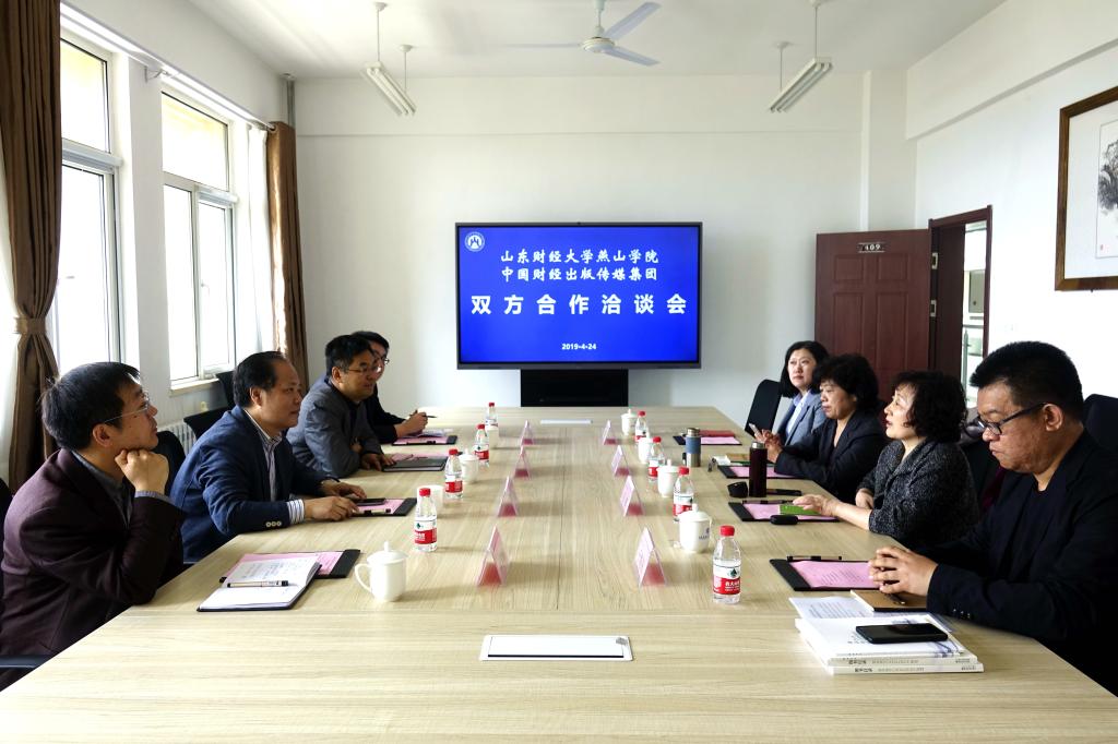 4月24日,我校与中国财经出版传媒集团在莱芜校区四楼会议室召开合作洽谈会。中国财经出版传媒集团副总经理吕萍、经济科学出版社副总编辑柳敏、分社社长于海讯、分社编辑陈晨、院长刘瑞波、副院长魏新刚、教务处处长李学峰及相关负责人出席洽谈会。