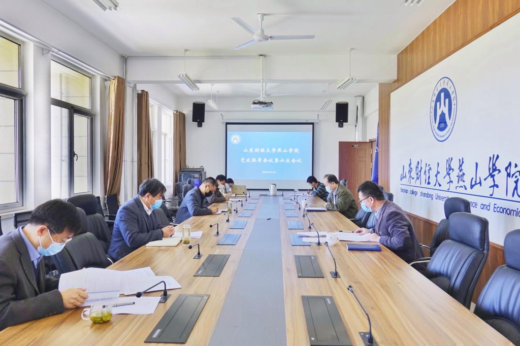4月22号上午,山东财经大学燕山学院党政联席会第六次会议在莱芜校区办公楼五楼会议室召开。院长刘瑞波、党委书记王松、理事会理事王本义、副院长魏新刚、党委副书记张红旗、副院长李学峰出席会议,各相关处室负责人列席会议。