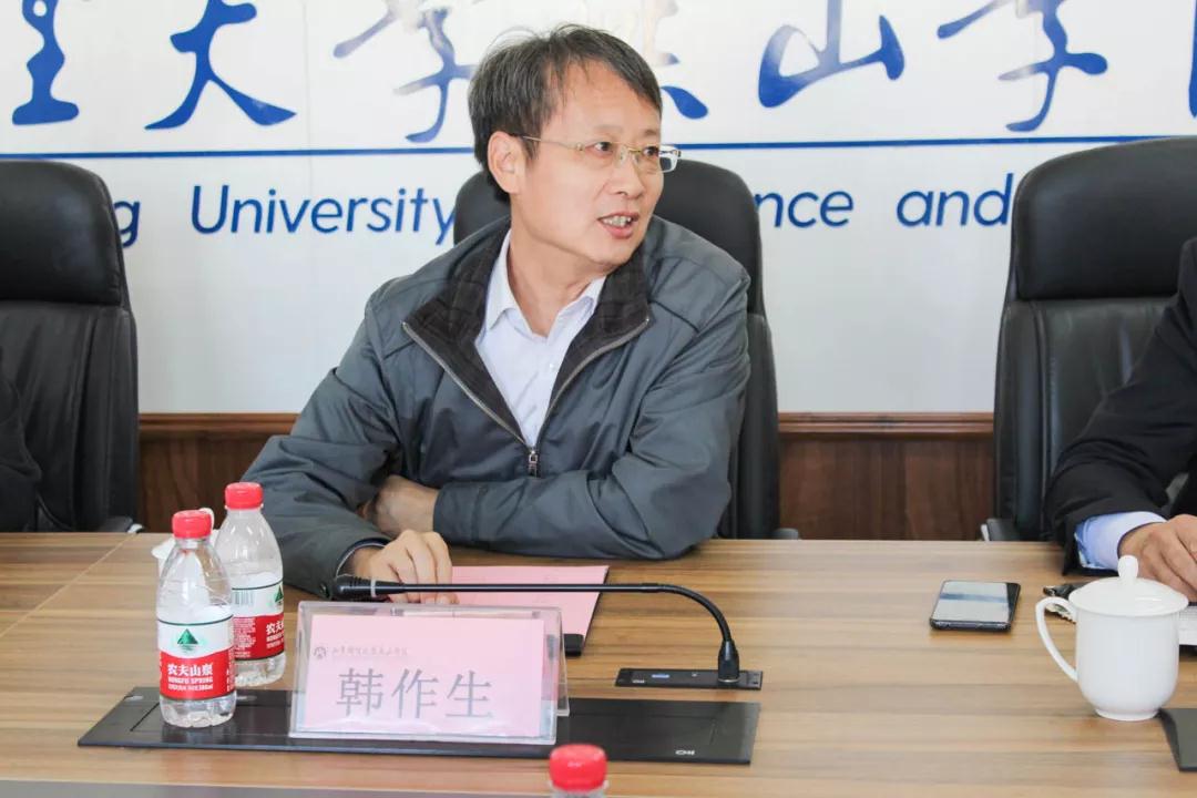 山东财经大学燕山学院院长孙玉杰为各位领导介绍了我校的发展历史。他说,燕山学院的十五年共分三个阶段,其中第一个阶段是由母体学校山东财经大学和黄金集团合作办学的“金色童年”,第二个阶段是迁到明水校区,成为校中校的“财大明珠”,第三个阶段是来到凤凰之城莱芜,见证燕山学院不断发展进步的“凤凰腾飞”。学校的发展,得益于一代又一代领导班子的辛勤付出,得益于领导的审时度势、科学决策,得益于管理团队的团结协作,这是学校宝贵的精神财富,概括来说,即:不畏艰难、敢于吃苦的奉献精神;与时俱进、勇于突破的创新品格;坚守初心、立德树人的使命担当;追求质量、诚实本分的职业操守;前赴后继、团结协作的团队传统。今后,学校将继续做好教学管理工作,努力“修炼内功”,将学校的金字招牌打磨得更加闪亮。希望在座的前辈们积极为学校的发展献计献策,多提宝贵的意见和建议。
