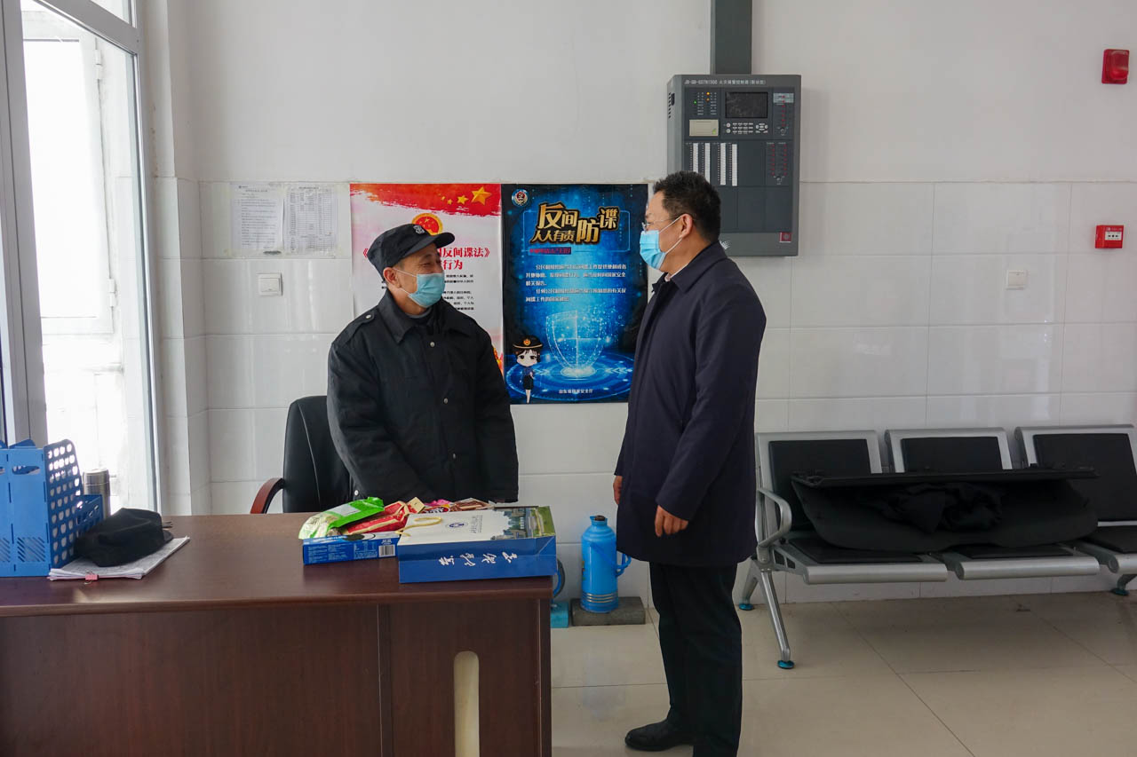 孙玉杰先后走访了莱芜校区校门值班室、视频监控中心、学生宿舍、教师公寓、教学楼、办公楼等值班岗,与在岗职工亲切交谈,详细了解学校安保、疫情防控等工作情况和值班人员生活情况,并代表学校向奋战在一线的教职员工表示感谢,对他们坚守工作岗位的辛勤付出表示敬意,希望大家继续用心用情做好服务保障,确保节日期间校园安全稳定。