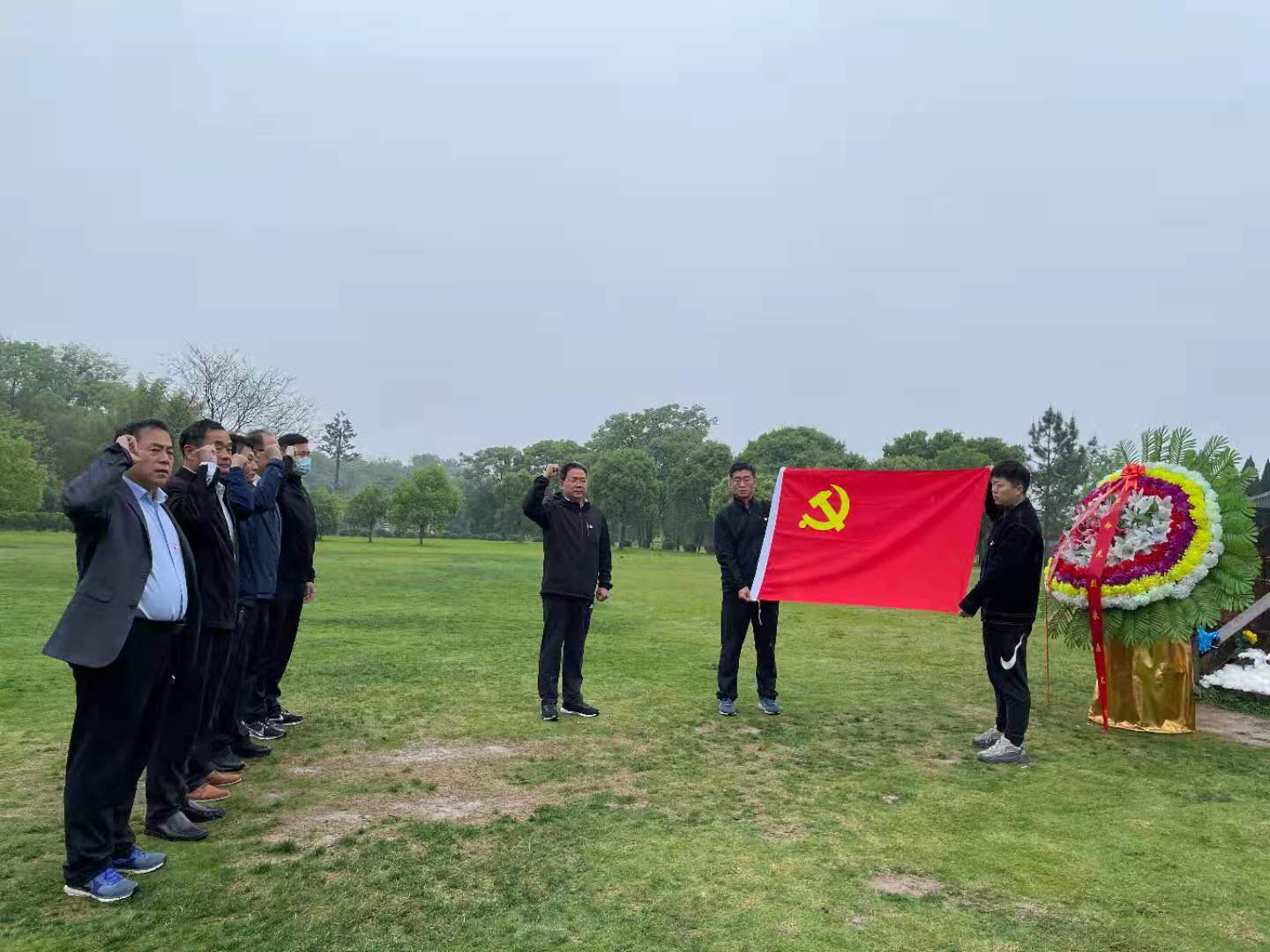 在红军烈士纪念塔前,党员们面向党旗,庄严地举起右拳,重温入党誓词,表达了对党的忠诚与热爱。红军广场上,“踏着先烈血迹前进”八个大字庄严凝重,蒙蒙细雨中,党员同志怀着无比祟敬的心情,深切缅怀在历次革命战争中牺牲的红军指战员,接受先烈们革命精神的洗礼。