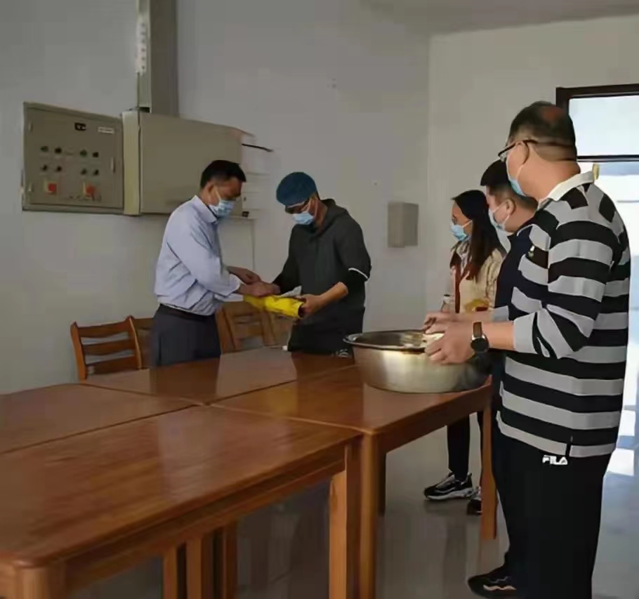 下午4:30,全体留校教师齐聚食堂。按照疫情防控要求,结合场地实际,教师们三五一组,一切准备工作就绪后,就开始分头忙碌起来。