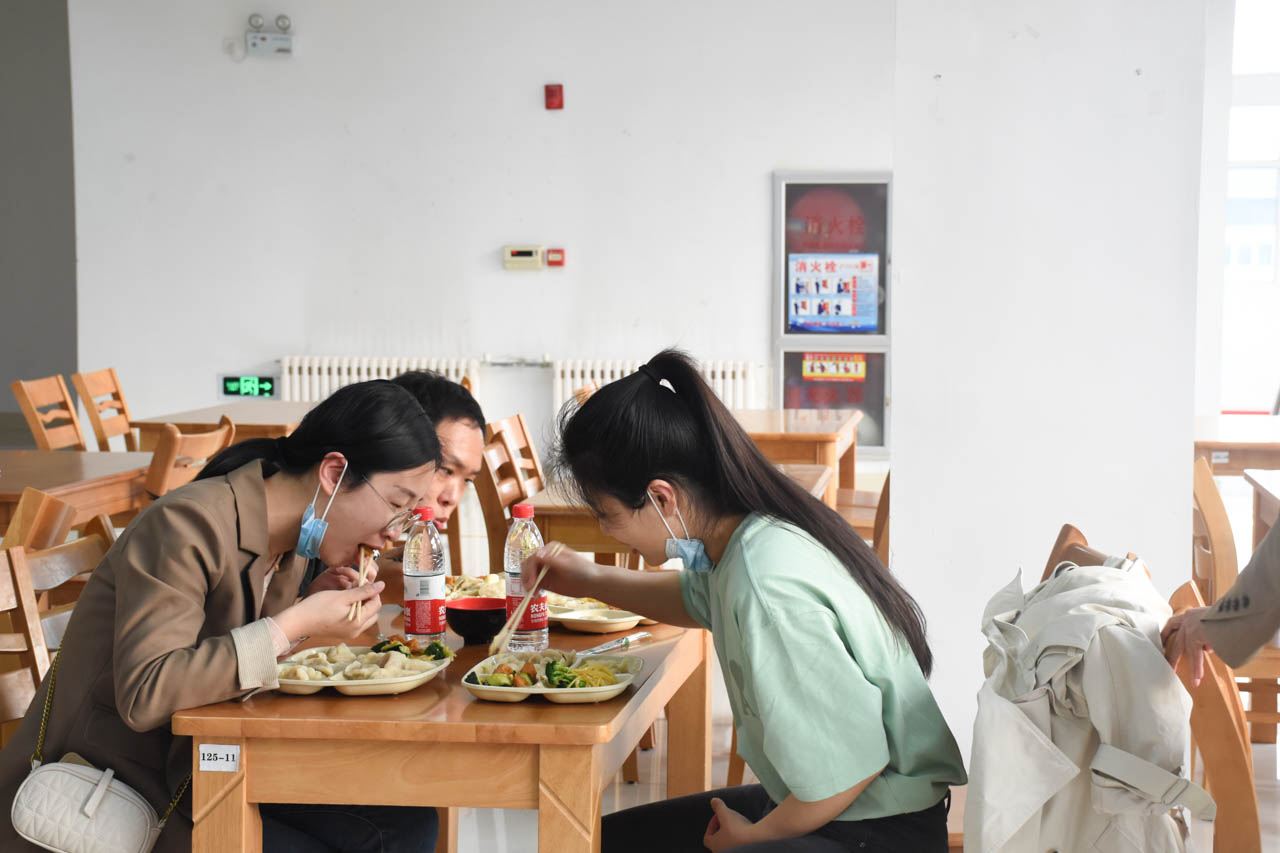 活动中,大家有说有笑,相互切磋包饺子的技巧,现场氛围其乐融融,让每个人从封闭在校的紧张状态中放松下来。