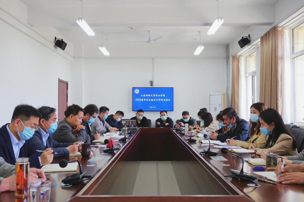 就做好2022届毕业生就业工作,院长孙玉杰提出三点要求:一是提高政治站位,充分认识就业形势与任务。就业是民生之本,是“六稳”“六保”之首,也是学校办学水平、人才培养质量的重要检验。要深刻认识当前形势下做好毕业生就业工作的重要性,切实增强紧迫感、使命感,以父母之心和兄弟姐妹之情对待每个学生,全面落实好党中央、国务院以及教育部和山东省的各项部署要求,全力以赴把各项就业工作做实、做细、做到位。二是凝聚全校合力,形成齐抓共管的大就业工作格局。要健全工作机制,突出工作重点,院长书记抓紧靠牢、分管领导靠前指挥、各相关部门单位协同推进、全校教职工共同参与,多措并举推动就业工作开展。要开展“访企拓岗”专项行动,校领导班子带头、各学院、各部门积极行动,联系走访企业,为毕业生挖掘更多优质岗位资源。要提供精准指导服务,切实把握毕业生就业工作的正确方向和毕业生的就业思想动态,持续开展就业创业政策宣传及心理辅导,帮助毕业生认清形势,树立正确就业观;根据学生具体情况进行分类指导,广泛搜集就业信息,让毕业生第一时间获取就业信息资源。要开展就业困难群体帮扶行动,采取重点推荐、“一对一”指导等方式,为就业困难群体毕业生提供就业帮扶。要积极主动拓展就业市场,进一步发挥校园招聘主渠道作用,线上线下结合,精准组织开展校园招聘活动。三是强化组织领导,压牢压实工作责任。要成立学校就业工作领导小组,明确职责任务,细化分解指标,层层抓好落实;要落实就业目标激励机制,出台《山东财经大学燕山学院就业考核及奖励实施办法》,将毕业生就业各情况与各学院、各部门评先评优挂钩;要加强定期通报反馈,学生工作处要建立台账,及时通报各学院就业情况及访企拓岗开展情况。他强调,毕业生就业工作不是哪个人、哪个部门的事情,需要共同谋划、共同发力。全校上下要立即行动起来,全员参与,全程服务,全方位帮扶,最大限度地降低疫情对毕业生就业工作的影响,实现毕业生充分就业、高质量就业,确保我校2022届毕业生毕业去向落实率等各项指标实现预期目标。