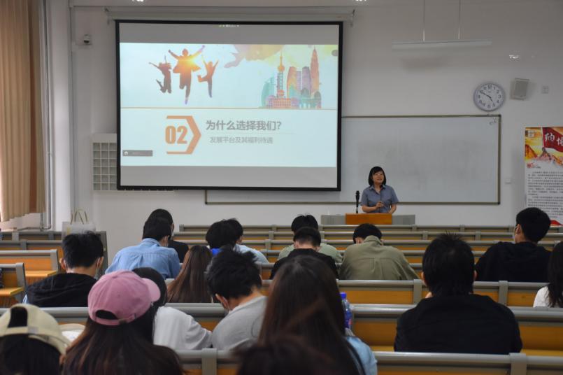 纳博士成立于2005年,是一家致力于为学校、部队等特通渠道提供多元化服务的综合企业。招聘会上,纳博士工作人员播放公司短片。人力资源部陈经理详细介绍了员工待遇、薪资福利、提供岗位、试用期情况和晋升空间及方向等。