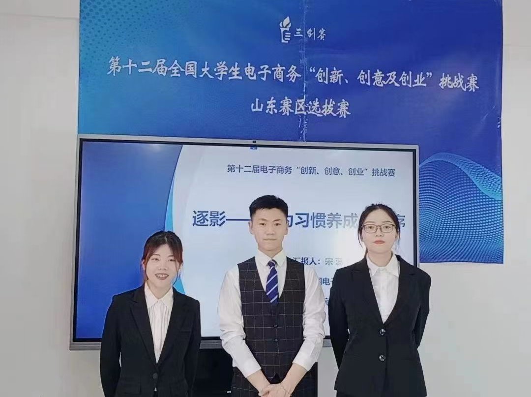 在比赛中,我校参赛队员沉着冷静,信心十足,有条不紊地就自己的创业项目进行全面地分析,呈现出一系列内容完整、结构清晰的创业计划,展示出我校学子优秀的“创新、创意、创业”能力和坚实的专业知识基础。经过一天半的激烈角逐,我校4支队伍获奖,其中,王厚森、宋蕊、张婉莹三位同学的参赛项目《逐影——行为习惯养成小程序》获得省级一等奖。