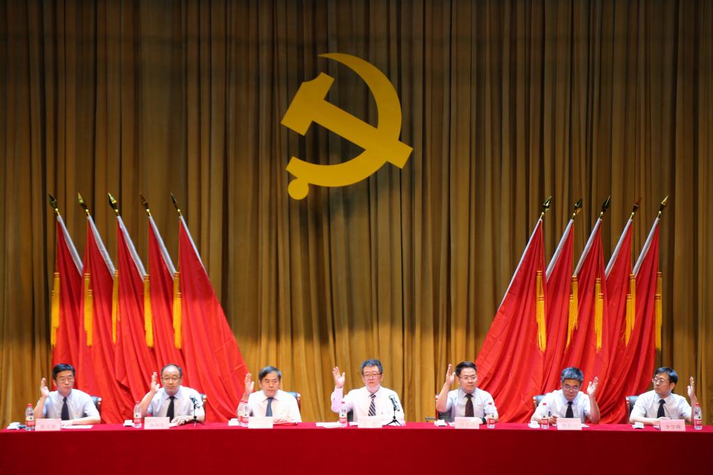 大会的主题是:以习近平新时代中国特色社会主义思想为指导,全面贯彻落实党的十九大和十九届二中、三中、四中、五中、六中全会精神,落实新时代党的建设总要求和新时代党的组织路线,落实党的民主集中制,紧密结合工作实际,通过对党的基层委员会换届选举,夯实基层组织建设,努力把学院党委建设成为政治坚定、组织健全、作风过硬、富有活力的坚强政治核心和战斗堡垒,团结带领燕山学院全体党员和广大师生员工,凝心聚力、锐意进取、改革创新,为建设全国一流高水平财经特色大学而努力奋斗。