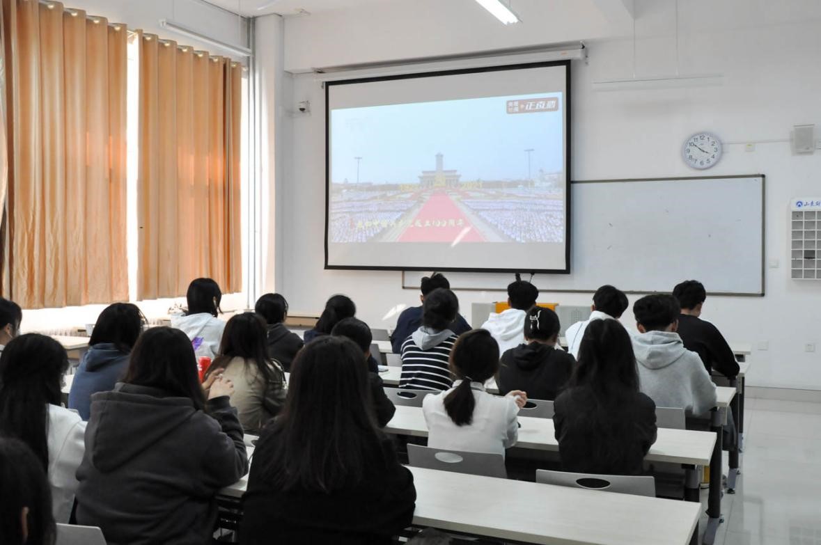 学生在教室、宿舍收看直播