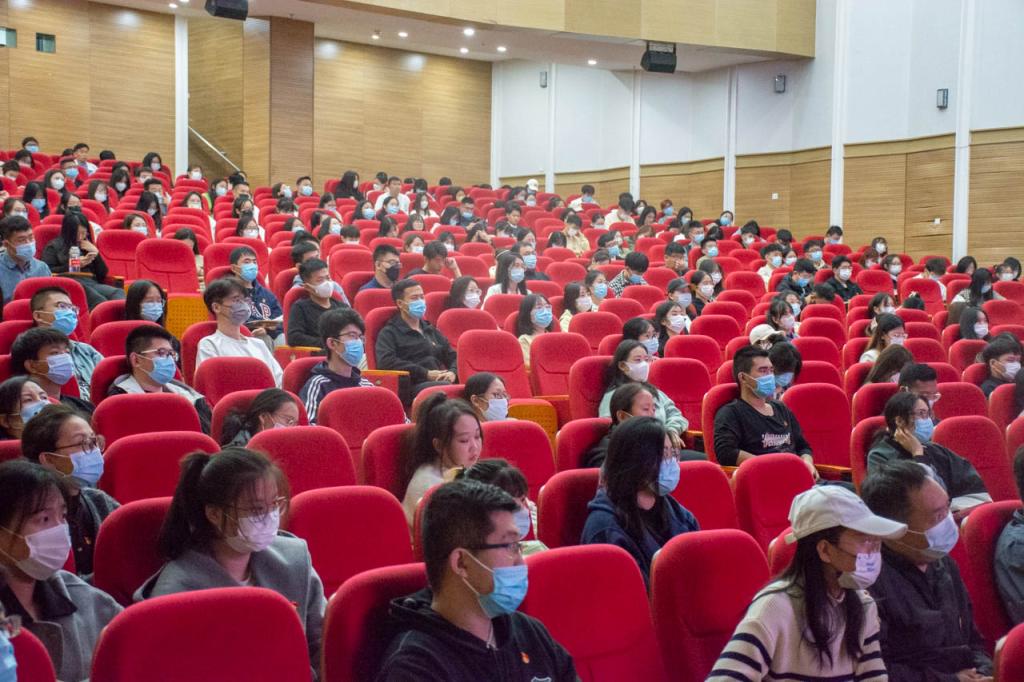 学校领导、全体党员、部分教师代表在千人礼堂集中观看直播