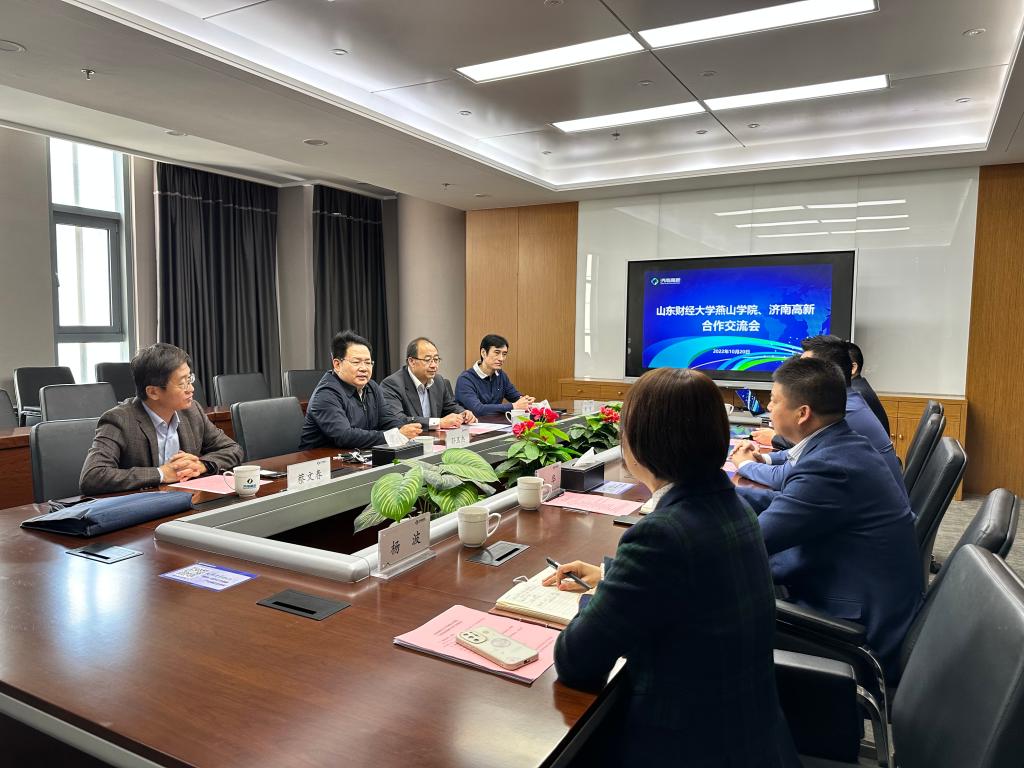 10月20日上午,我校与济南高新发展股份有限公司举行合作交流会。院长孙玉杰、党委副书记杨和亭、副院长蔡文春参加活动。山东财经大学会计学院教授、济南高新独立董事郑伟,济高控股集团党委委员、济南高新董事长、总经理贾为,济南高新副总经理王华等出席活动。