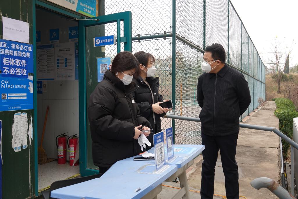 在快递服务中心,孙玉杰要求工作人员要做好邮件的静置和消杀工作,做好快递预分拣,优化取件流程,缩短取件时间,并注意提醒取件人做好个人防护和相关防疫措施。