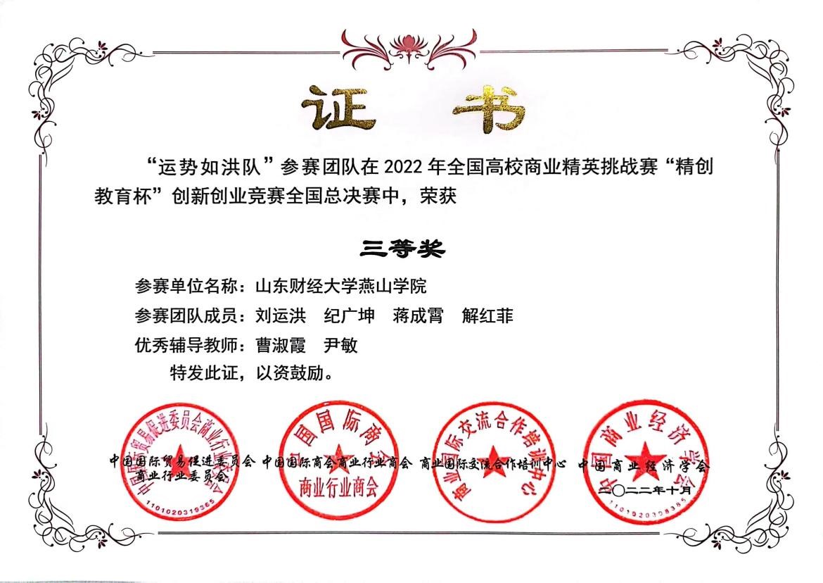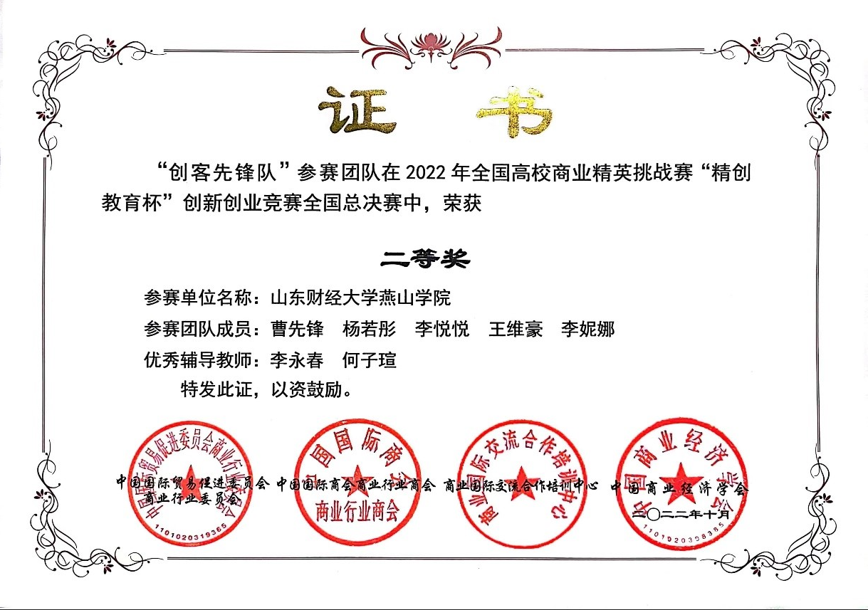 10月23日,2022年全国高校商业精英挑战赛 “精创教育杯”创新创业竞赛全国总决赛及山东省总决赛相继落下帷幕。我校工商学院学子在比赛中获得优异成绩。