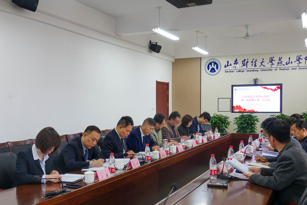 4月6日上午,山东财经大学燕山学院第二届理事会第一次会议在明德楼三楼会议室召开。理事长吕国森,理事张波、高天云、孙玉杰 、王松、付玉亭、亓琳出席会议;正处级组织员张红旗、副院长魏新刚、李学峰、蔡文春列席会议。