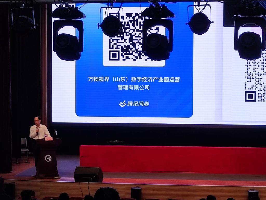 为了更好地服务于我院学生毕业实习及就业工作,鼓励学生以积极的心态面对就业,6月14日下午,万物视界(山东)数字经济产业园运营管理有限公司董事长范永胜、总经理马丹君、顾问朱向莹一行赴我校进行企业专场宣介会,宣介活动在学校千人礼堂举办,我校党委书记王松、正处级组织员张红旗、国际商学院院长、国际商学院辅导员等参加了此次宣介会,宣介会由毕红毅教授主持,国际商学院大四毕业生、大三在校生全部参与。