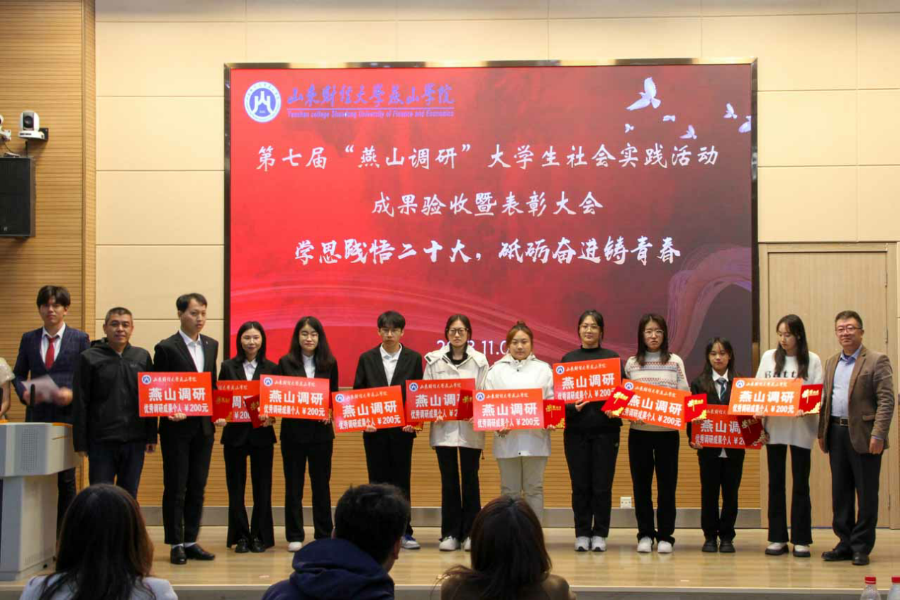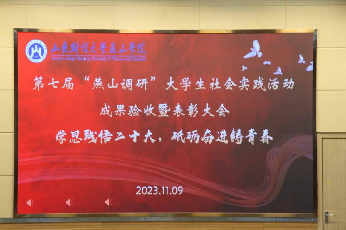 为深入学习贯彻习近平新时代中国特色社会主义思想,牢牢把握“学思践悟二十大,砥砺奋进铸青春”主题,为建设社会主义现代化国家贡献青春力量,11月9日下午,山东财经大学燕山学院第七届“燕山调研”大学生社会实践活动成果验收暨表彰大会在8106多媒体教室举行。