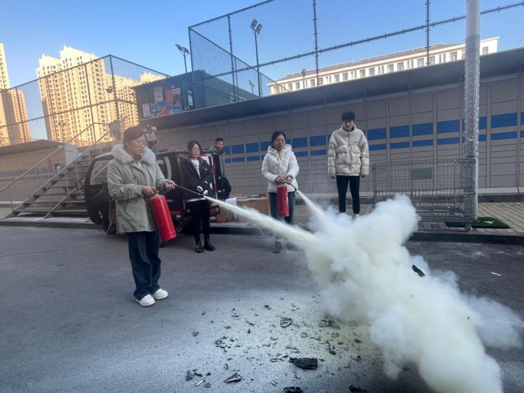 1月9日下午,培训人员转场至舜迪校园连锁超市,为超市员工组织了灭火器使用讲解与初起火灾扑救操作,并进行了防灾疏散逃生演练活动。