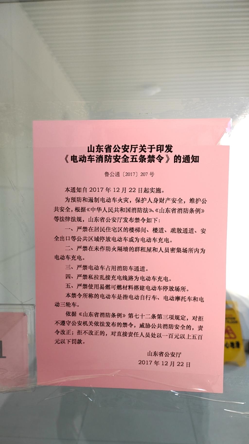 为进一步落实学校假期前安全大检查要求,巩固检查成果,预防和遏制电动车火灾,维护师生员工人身财产和公共区域安全,安保处于1月22日开展了电动自行车专项安全检查工作,对在公共楼宇内停放电动车或为电动车充电以及占用疏散通道、安全出口等问题进行了排查和清理。同时,在重点部位张贴了《山东省公安厅关于印发<电动车消防安全五条禁令>的通知》,提醒师生员工共同营造平安和谐的校园环境和假期秩序。