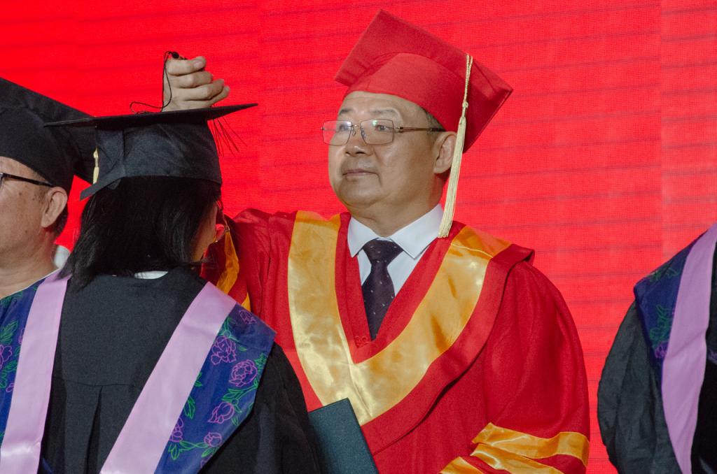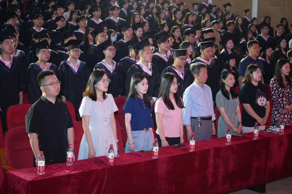 伴随着热烈的掌声,孙玉杰院长上台致辞。他代表学校向3003名毕业生们表示衷心的祝贺和美好的祝福,并向毕业生寄语“四点期望”:一要 “仰望星空”,也要“脚踏实地”;二要胸怀“国之大者”,担当时代使命;三要直面挑战,百折不挠;四要知敬畏,懂感恩。希望同学们按照“受过大学教育的人”的标准来要求自我,用青春的激情与拼搏拥抱这个伟大的时代,以智慧的汗水和努力开创自己的美好未来,以无畏的勇气和激情书写人生的壮丽篇章。最后,孙玉杰院长饱含深情地表达了对同学们美好真挚的祝福和浓浓的不舍之情。