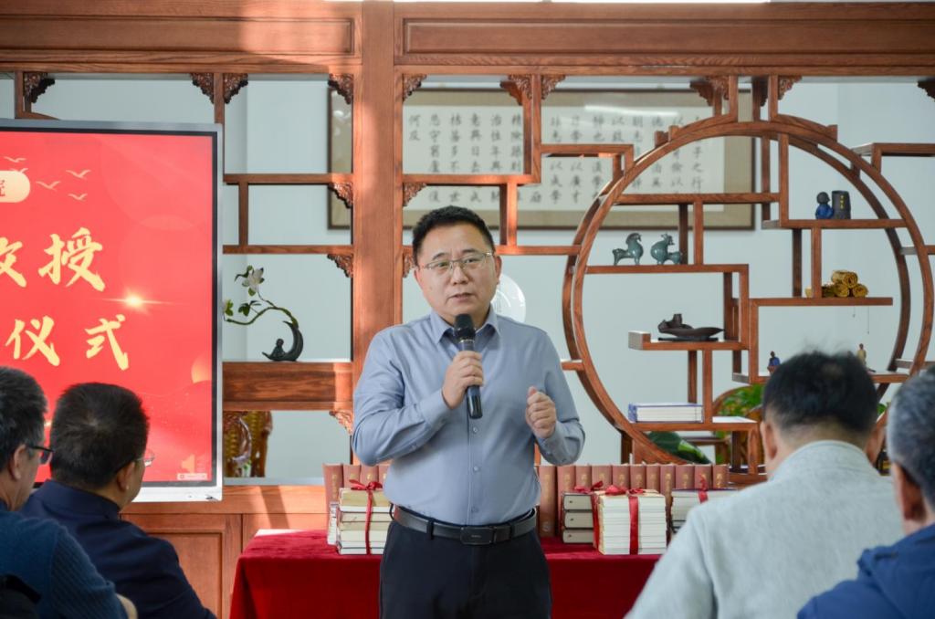 院长邵文涛代表学校接受孙玉杰教授赠书。正处级组织员王松向孙玉杰教授颁发捐赠证书。