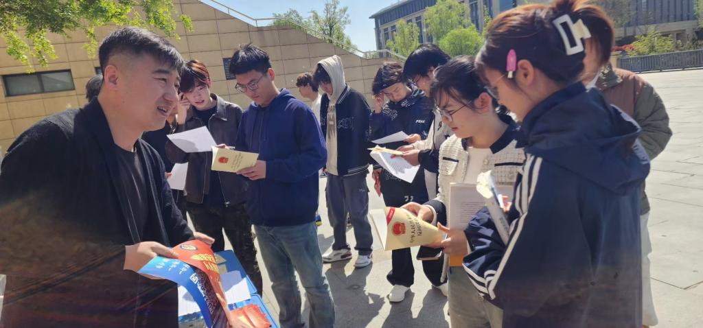 活动当天,安全管理处工作人员带领参加劳动周的同学来到图书馆前,向上下课的同学们发放维护国家安全宣传彩页及《公民反恐防范手册》、《中华人民共和国反间谍法》、《中华人民共和国反间谍法实施细则》、《反间谍安全防范工作规定》等读本,指导同学们扫描二维码,关注线上更多国家安全教育政策法规和注意事项。