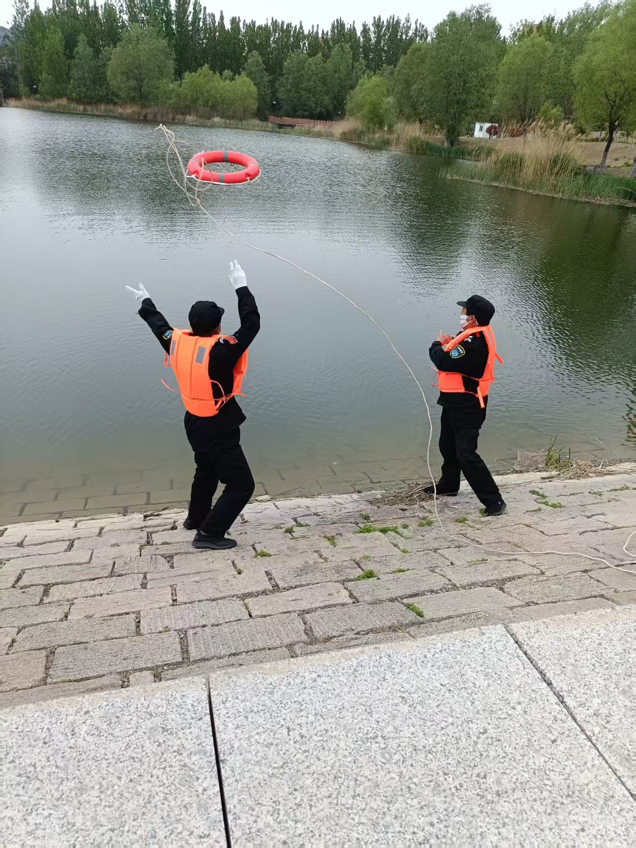 此次演练以凤仪湖及周边水域为主要区域。演练程序包括校园“110”接到险情救援请求,安保人员按照预案迅速到达“事发”水域,依次取出救生船、救生圈、救生衣、救生杆等水上救援器材,及时展开救援工作。