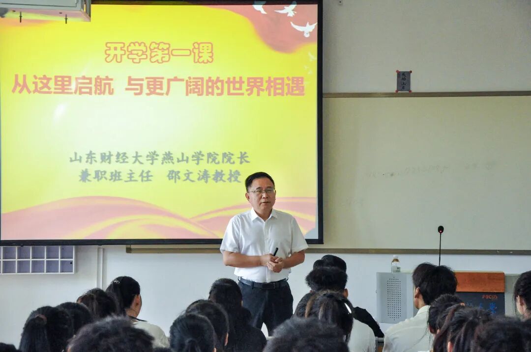 9月1日上午,山东财经大学燕山学院2025级新生入学教育专题讲座在2教403教室温情开讲。院长邵文涛为今年首次招生的航空服务艺术与管理专业新生们带来了一堂兼具思想深度与实践指导的“开学第一课”。
