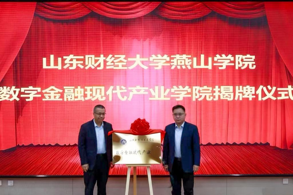 之后,中国建设银行莱芜分行党委书记王敏与山东财经大学燕山学院院长邵文涛共同为产业学院揭牌,标志着山东财经大学燕山学院数字金融现代产业学院正式成立。