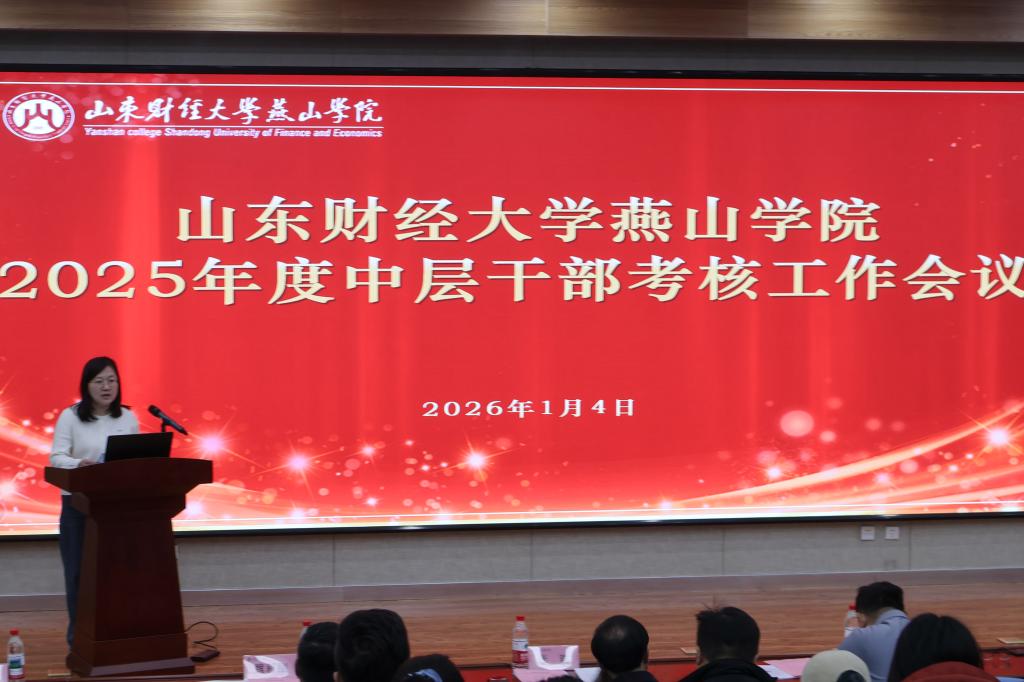 为打造高素质专业化的干部队伍,切实为学校高质量发展提供坚强组织保障,1月4日上午,山东财经大学燕山学院2025年度中层干部考核工作会议在图书馆报告厅举行。学校领导班子成员以及全体中层干部、部分教师代表参加会议。