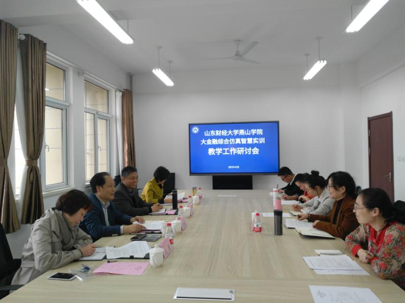 为进一步推动大金融综合业务仿真实训课程建设,完善实训课程内容设计,明确课程建设方案,4月25日,燕山学院在莱芜校区行政楼四楼召开了大金融综合仿真智慧实训教学工作研讨会。院长刘瑞波出席会议,山东财经大学金融学院的马孝先教授、崔越副教授和保险学院的付红副教授,实验实训中心主任王俊籽和中心教学秘书、专任教师参加会议。