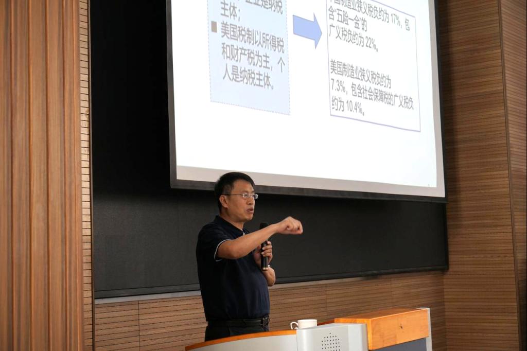 王培志教授在讲座中旁征博引,以具体详实的案例和通俗易懂的语言,不但使在场的同学们对中美贸易战的背景、谈判经过、影响、走势和应对策略有了整体的、更深层次的了解和把握,而且使同学们能够以更清晰的视角捕捉和看待当前中国和当今的世界,王教授的讲座精彩纷呈,语言幽默诙谐,不断引起在场青年教师和同学们的阵阵掌声。