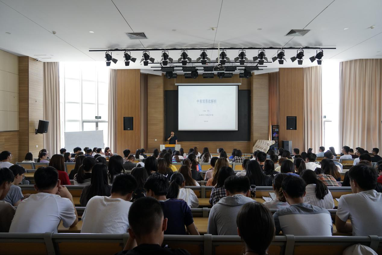 本次讲座主要围绕中美贸易战这一热点问题展开,详尽阐述了中美贸易战的含义、起因、影响和可能的结果。讲座中王教授利用中美两国进出口贸易数据分析了中美两国之间紧密的贸易伙伴关系,剖析了中美贸易战的实质及其最新动向,帮助同学们透过表象切实体会中美贸易战的实质及对中国的影响。