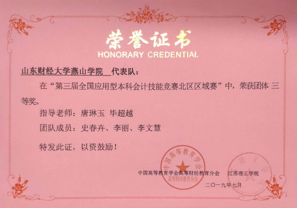 本次大赛中,会计手工账务处理项目,史春卉、李丽、李文慧荣获二等奖,李欣蔚等荣获三等奖。会计电算化项目,李丽荣获二等奖,史春卉等同学荣获三等奖。通过参加本次比赛,同学们都对自己所学的专业、常见的业务处理以及自身的不足等有了更清晰、更理性的认识。