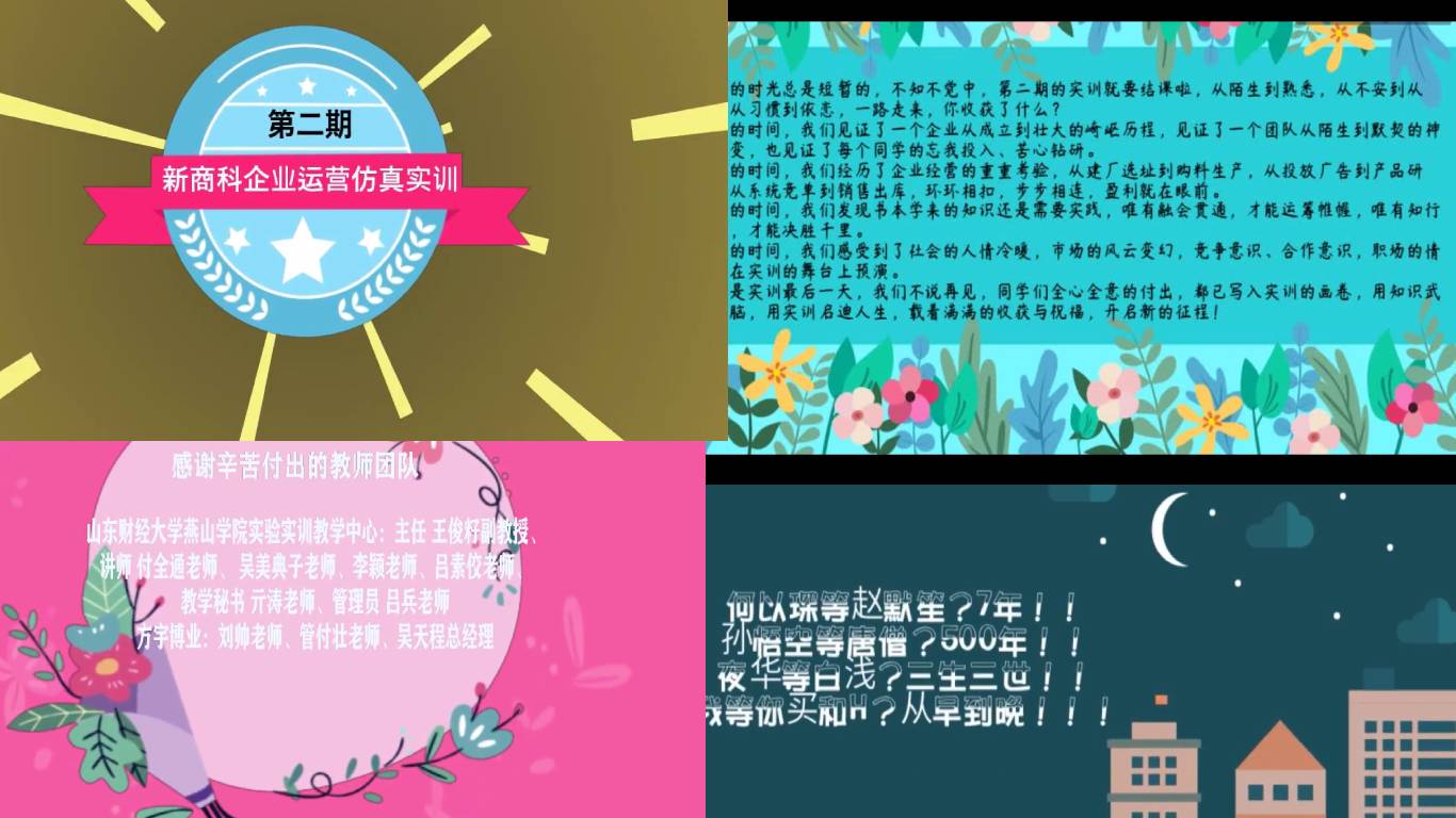 接下来播放了由吴美典子老师制作的第二期实训总结视频,视频通过幽默诙谐又不失严肃认真的方式对第二期课程进行了总结,通过观看视频让同学们回忆起了从参加课程的第一天到最后一天的点点滴滴,回忆起了从陌生到熟悉再到熟练所经历的的风风雨雨,回忆起了自己的企业从成立到壮大的崎岖历程,回忆起了理论联系实际,恍然顿悟,茅塞顿开的兴奋。吴老师精心制作的视频受到了同学们的大加赞赏,迎来掌声一片。