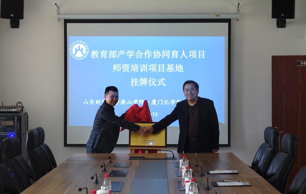 5月12日下午,我校与厦门亿学软件有限公司合作“教育部产学合作协同育人项目——师资培训项目基地”挂牌仪式在行政楼五楼顺利举行。厦门亿学软件有限公司副总经理柳小刚、山东区域总监周宗强及我校党委副书记张红旗、党政办公室主任蔡文春、国际商学院院长毕红毅、实验实训中心主任王俊籽等出席了揭牌仪式。