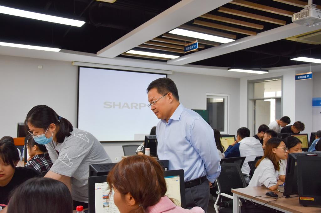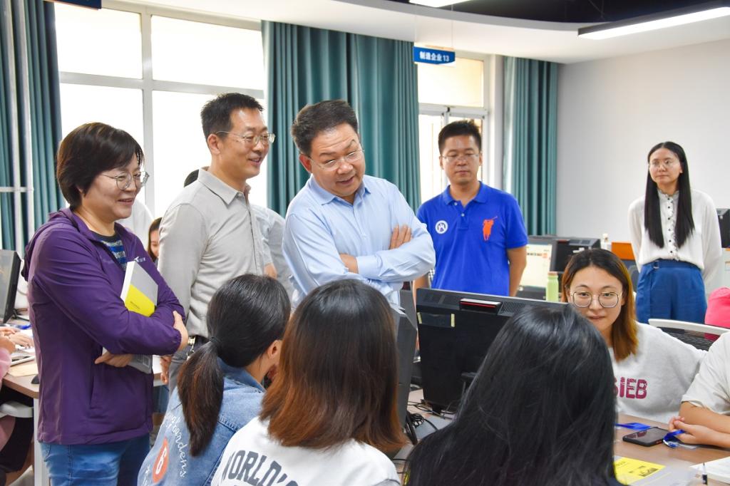9月6日,院长孙玉杰、副院长李学峰、教务处负责同志到实验楼跨专业综合实训室视察指导教学工作。