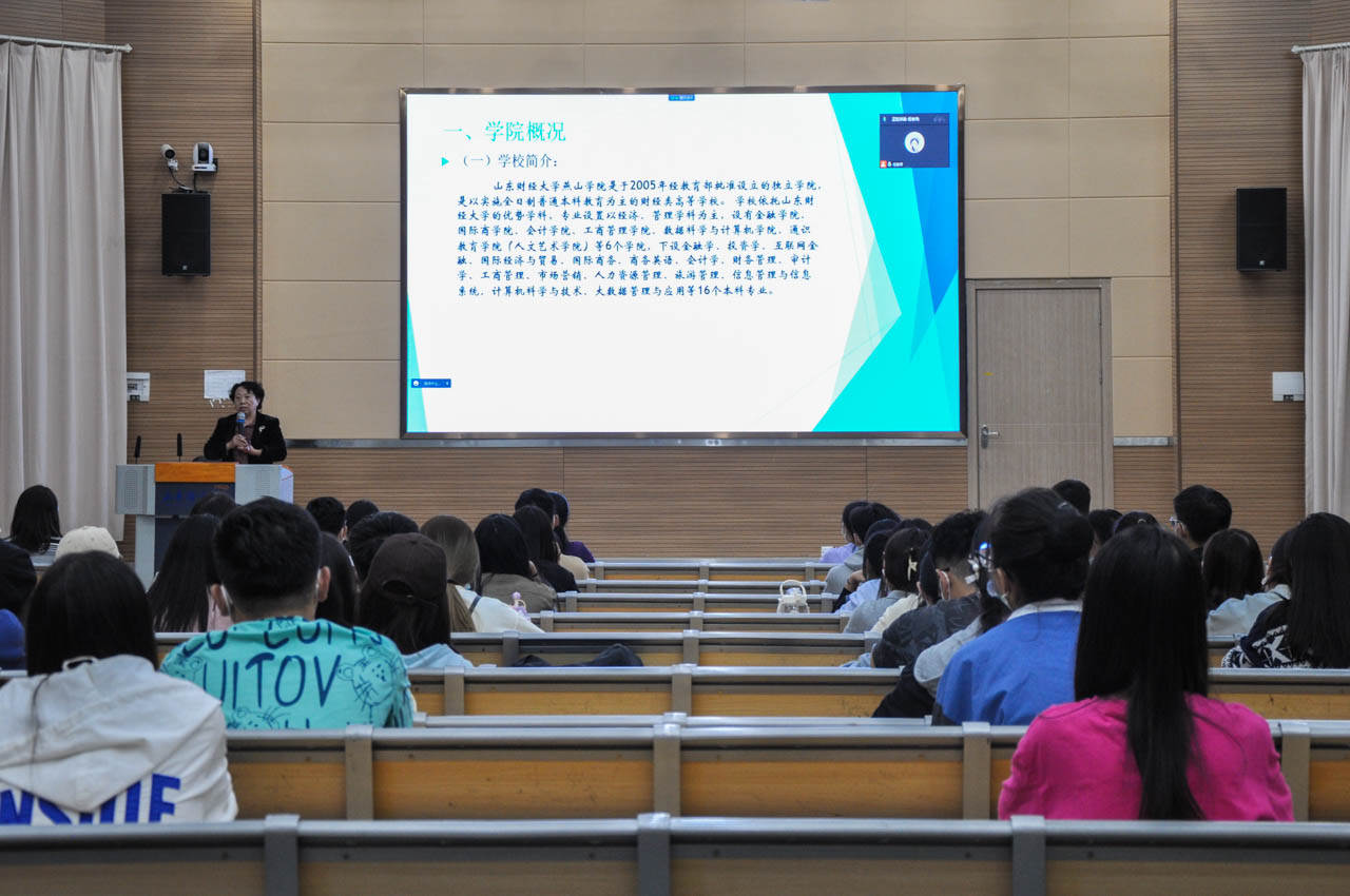 最后,毕红毅教授对2022级专升本同学表达自己对他们的希望与祝福。希望同学们树立远大理想,胸怀报国之志,做一个对社会和国家有用的人。与此同时,要学会生活,合理安排自己的时间。珍惜韶华,不懈奋斗,带着梦想在山财燕院开启新的学习生涯。既要仰望星空,又要脚踏实地,慢慢变好,成为更好的自己。