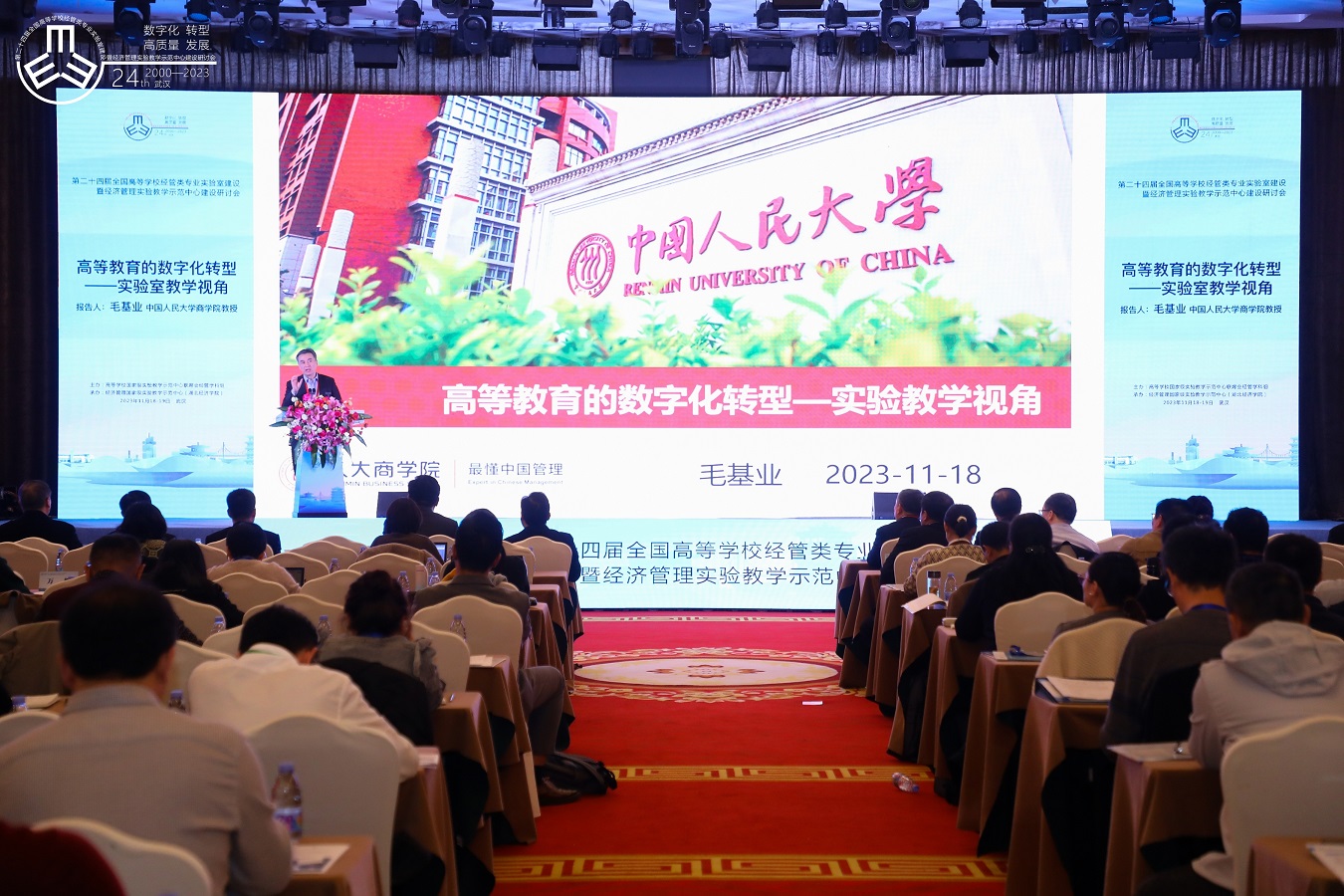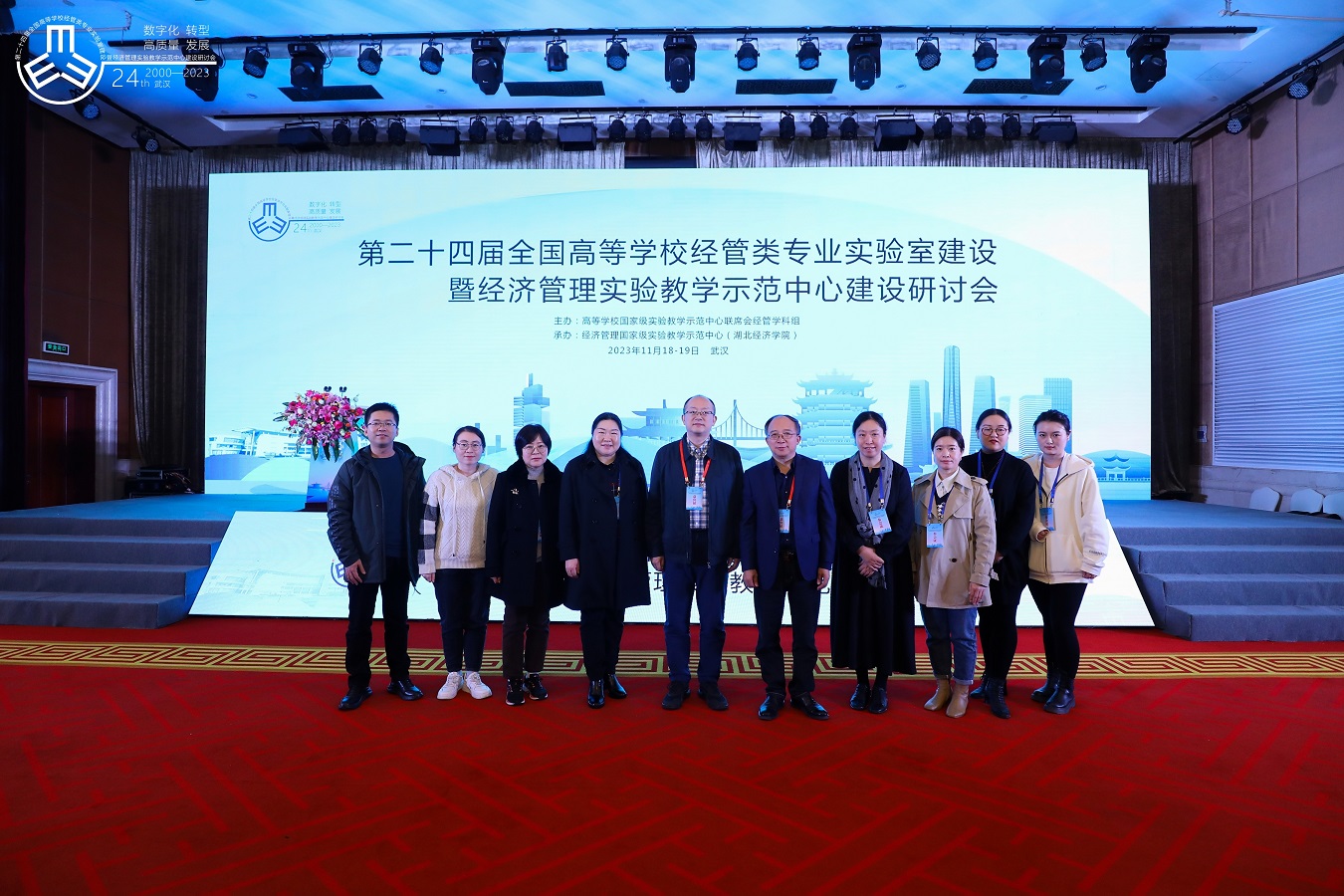 11月18日至19日,第二十四届全国高等学校经管类专业实验室建设暨经济管理实验教学示范中心建设研讨会在武汉召开。会议以“高等教育数字化转型与经济管理类实验教学高质量发展”为主题,由高等学校国家级实验教学示范中心联席会经管学科组主办,经济管理国家级实验教学示范中心(湖北经济学院)承办,来自国内74所高校的300余位专家学者、高校教师和企业代表共聚武汉,探讨数字时代经济管理类实验室建设与实验教学的新思想、新理论、新方法,分享经济管理类实验室建设与实验教学的新进展、新成果、新观点。学校实验实训教学中心主任王俊籽、办公室主任亓涛、专任教师李颖受邀参加本次研讨会。