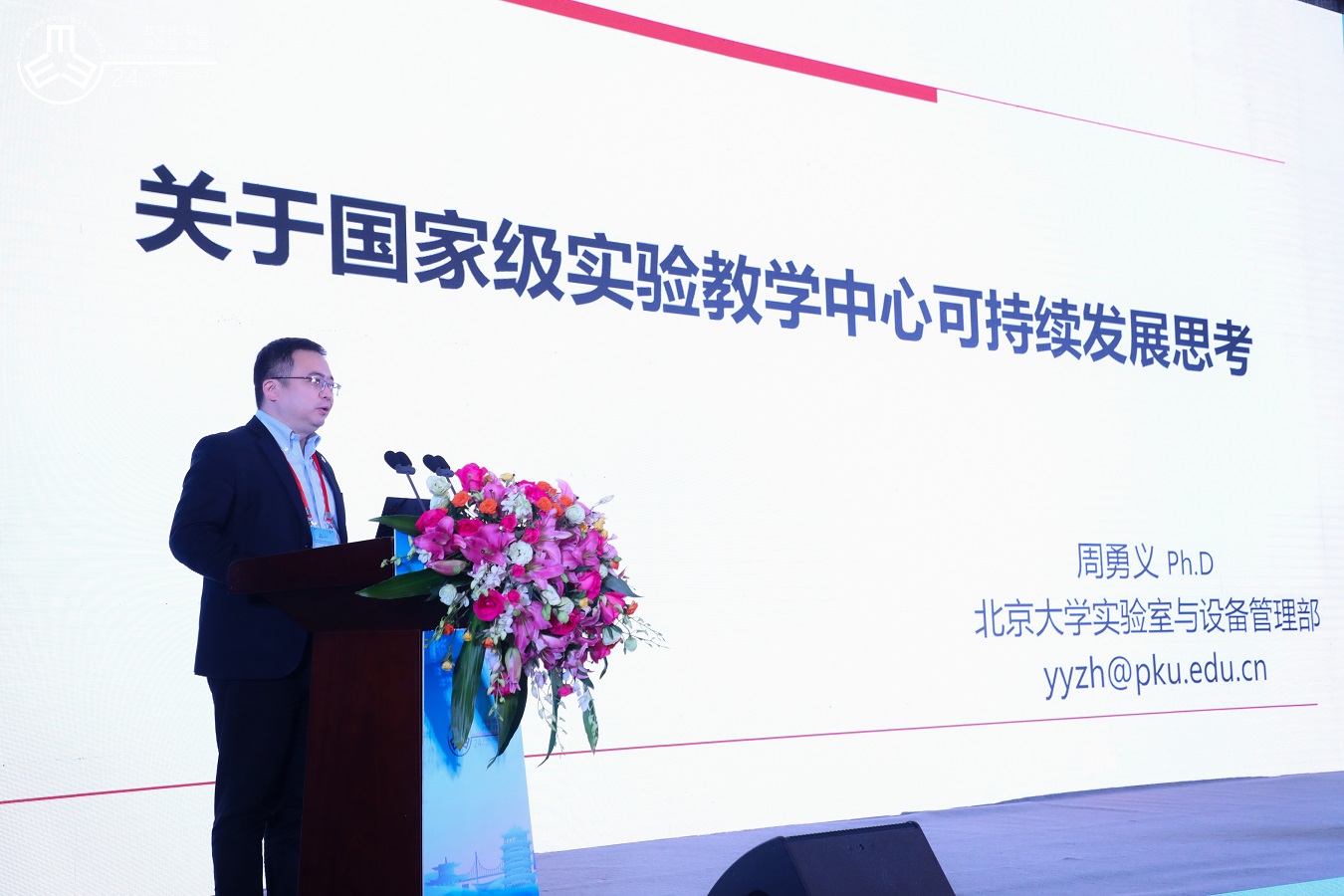 高等学校国家级实验教学示范中心联席会副秘书长、北京大学实验室建设与管理部副部长周勇义在题为“关于国家级实验教学中心可持续发展思考”的主题报告中介绍了国家级实验教学示范中心建设的发展历程、现状和成果,介绍了东南大学、天津中医药大学、江苏师范大学、西南交通大学和北京大学实验室建设的经验,提出了国家级实验教学示范中心内涵发展的思路,展望了国家级实验教学示范中心建设的未来发展方向。