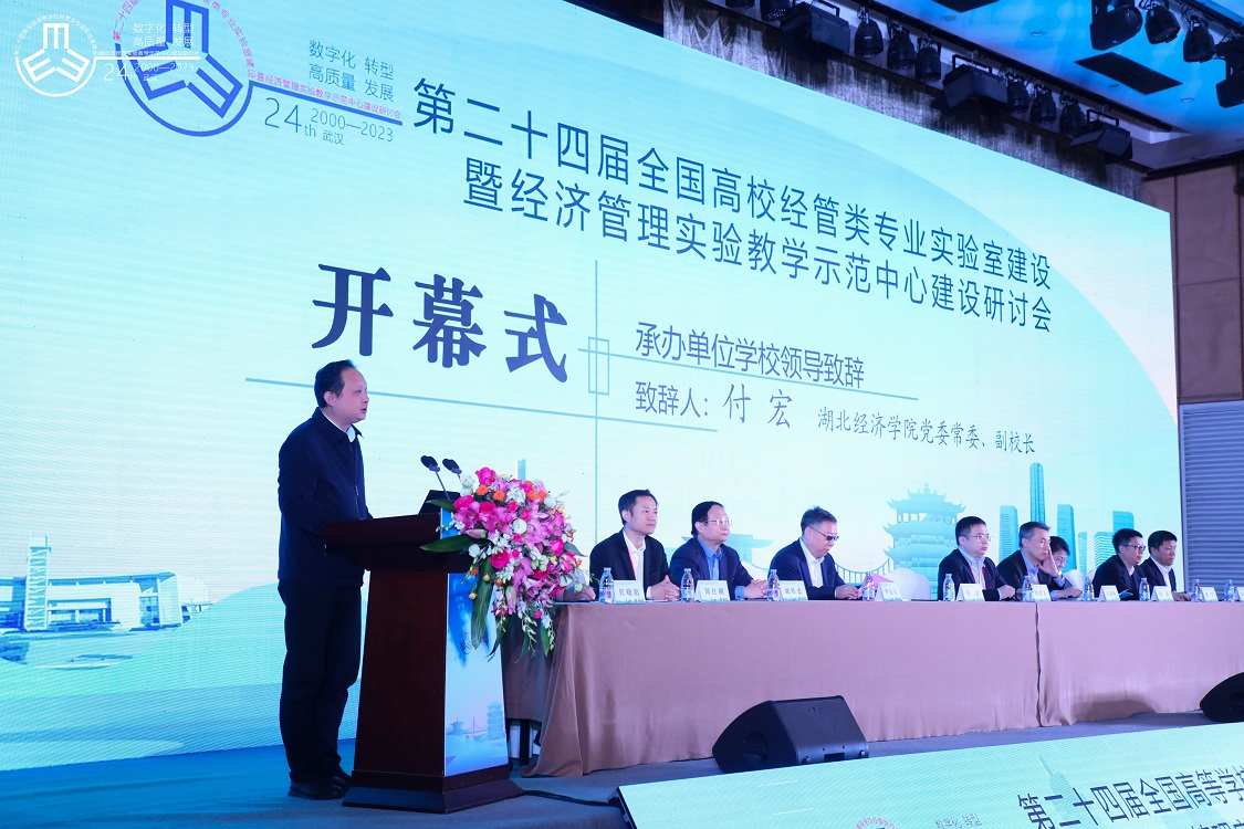 湖北经济学院副校长付宏作了题为“以高质量实验教学引领新财经一流人才培养改革”的主题报告,认为高质量是普及化阶段高等教育发展的时代主题,科技革命和产业变革正在重塑高等教育新生态,财经高校战略转型是新时代发展突围的新路径,实验教学是新财经一流人才培养的支撑引领,要进行理念、技术、组织和内涵变革。并对“大协同+深融合+新赋能”新商科实验教学“湖经方案”的探索、实践和成效做了介绍,对未来发展提出了对策建议。